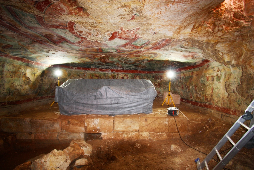 Datado entre os séculos I a V d.C, o túmulo apresenta 64 inscrições e cerca de 260 imagens que contam a versão mitológica do surgimento da cidade. A história começa com divindades provando ofertas recebidas por humanos e segue com homens trabalhando na terra, colhendo frutos. Há um painel onde é retratado um sacrifício em nome dos deuses guardiões da cidade. Ainda em fase inicial de estudo, especula-se que a pessoa da tumba seja a mesma que foi retratada na cena do sacrifício.
